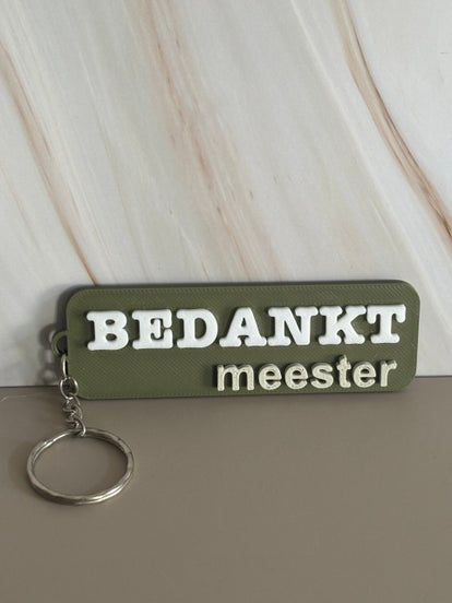 Deze 3D geprinte sleutelhanger is het ideale cadeautje voor de meester om hem te bedanken voor een super leuk jaar!