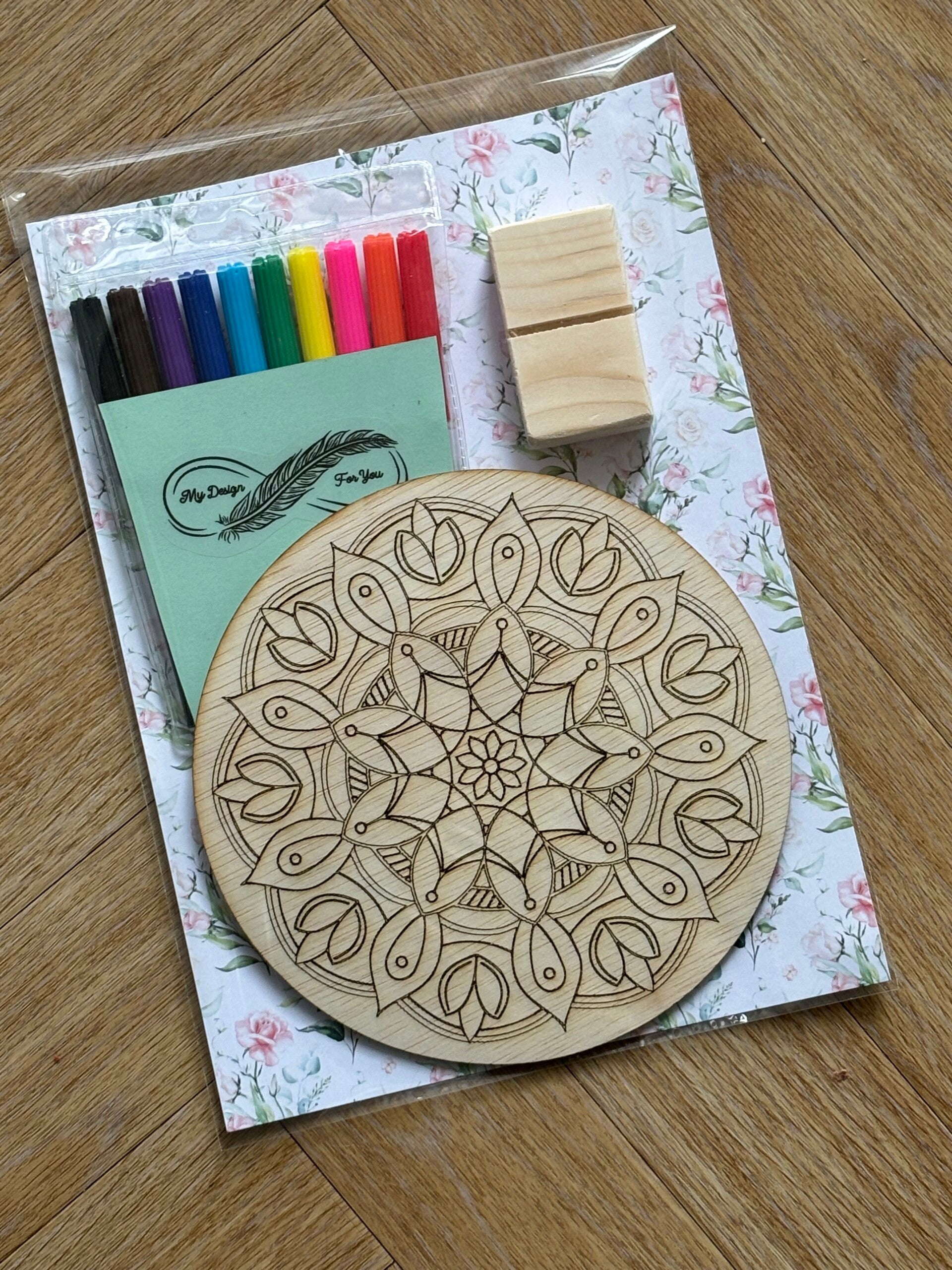 Deze leuke set bestaat uit stiften , een houten kleurplaat en een standaard om je kleurplaat in te showen als deze af is.